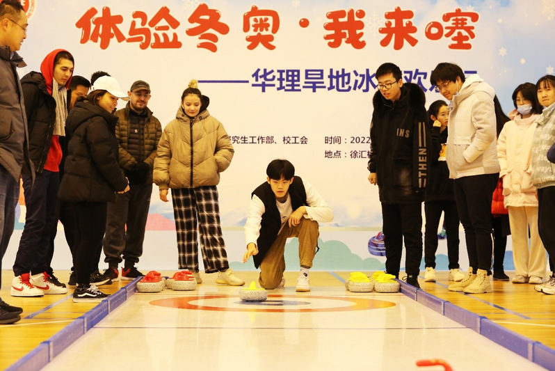 参加旱地冰壶体验的不仅有华理师生,还有一批“华二代”——华理教工子女。叶一禾是一名七年级的“华二代”,曾在冬奥会竞赛场馆云顶滑雪公园滑过雪,旱地冰壶是她体验的第二项冰雪运动项目,因此在观看冬奥会开幕式和竞赛时更觉亲切和有激情。“以前电视上看冰壶运动不觉得难,自己体验了才发现没那么容易,既考验我们的手腕力度,还考验我们的判断能力、应变能力等。”