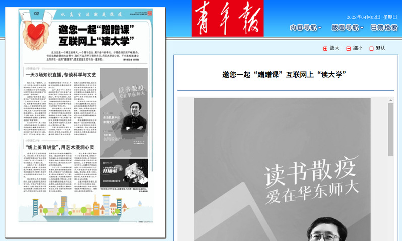 疫情挡不住校园的春风。华东理工大学艺术设计与传媒学院推出的“线上美育小讲堂”从3月17日起每个工作日的晚上7点准时上线。