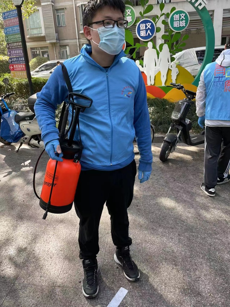 截至5月31日,施羽累计参与社区志愿服务工作170余小时。他协助所在小区居委,建立居民微信群,发布公告,分拣、消毒快递,核酸检测扫码登记,发放及回收抗原试剂盒,与居委会大家庭中的成员一起,凝聚成战疫合力。