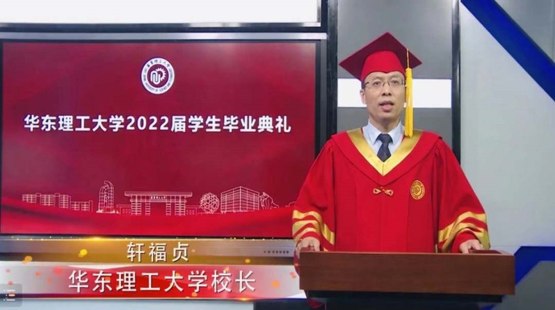 6月19日—24日,华东理工大学2022届学生毕业典礼以在线直播形式分批分时开展。在典礼上,校长轩福贞以“砥砺韧性,做笃定向未来的奔跑者”为题,代表学校党委书记杜慧芳和全体师生员工,向2022届毕业生送上美好祝愿和临别寄语。