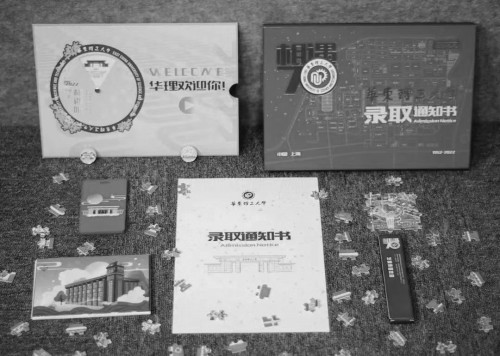 校庆版录取通知书共包含了礼盒、建筑转盘、录取通知书、华理周边文创等多项元素,可谓一份值得终身珍藏的、沉甸甸的大礼包。
