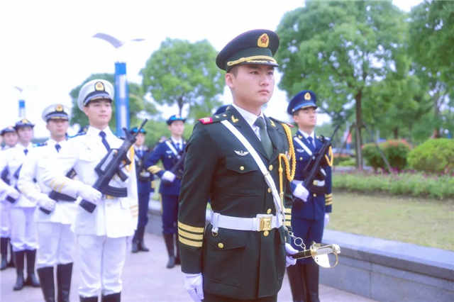 之后的于志豪担任了华理2021年新生军训教官,并参与上海中学新生军训的相关工作,摆臂、抬腿、间距,每一个动作细节他都不放过。他还负责华理国旗护卫队成员的选拔、培训以及军训分列式护旗方队的组织与训练。