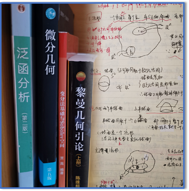 就这样,孟灿君和团队成员自2019年3月起在赵唯老师的指导下,开展了国家级“大创”项目“曲面上的测不准原理”的研究。该项目最大的难点在于要求掌握晦涩难懂的黎曼几何并融合了多种数学理论,很多内容需要自学。