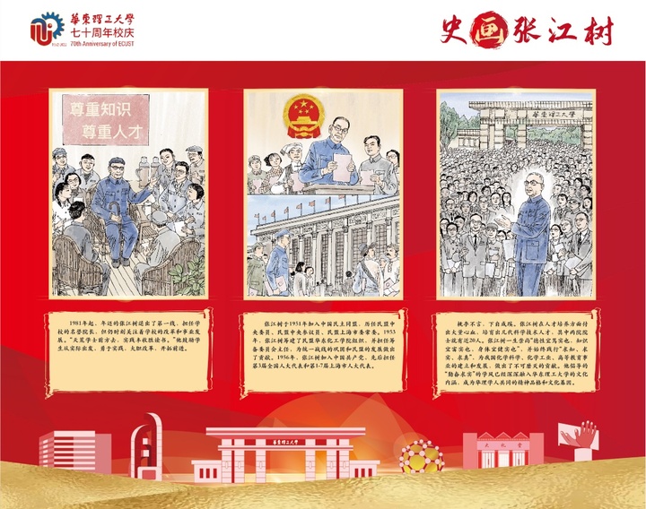 据悉,本次展览以华东理工大学首位校长张江树先生的生平为线索,用连环画的笔触,图文并茂地介绍了他求学、育人和治校的经历,阐述了他“德性宜笃实也,知识宜富实也,身体宜健实也”的教育理念,展示了他为国家教育与化学化工事业不懈奋斗的一生。本次展览除实体形式外,还采用微信推送等线上方式,全渠道立体式为校庆活动持续预热。