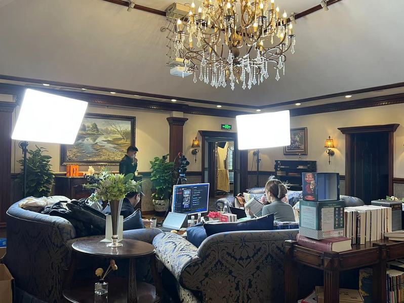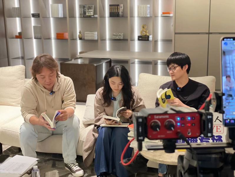 读客则把直播场景选在一个欧式家具的会客厅中,这也与读客直播的主题相关。“我们直播间的定位是主要面向25-50岁的男性,以社科类图书和经典文学为主。”读客负责人告诉澎湃新闻记者,棕色原木家具的沉稳配色与直播间的目标群体十分契合,因而他们选择这个场地做了一场人文社科专场直播。读客还特别将本公司出版的3本“上海书展百本好书”图书纳入直播,包括《半小时漫画党史》《文城》《南明史》。