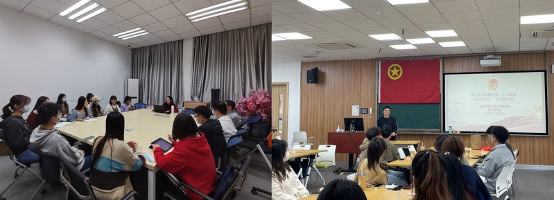 10月以来,化工学院组织研究生新生开展了“研”学党的二十大、共“化”美好新未来系列主题活动,通过“线上+线下”“导学+领学”“理论+情景”相结合的新模式,积极创设理论学习的新氛围,探索集体学习的新样态。以更多元的形式、更灵活的方式推进党的二十大精神在学生群体中往心里走、往深里走、往实里走。
