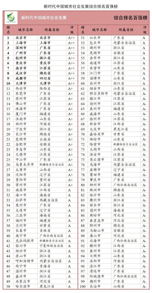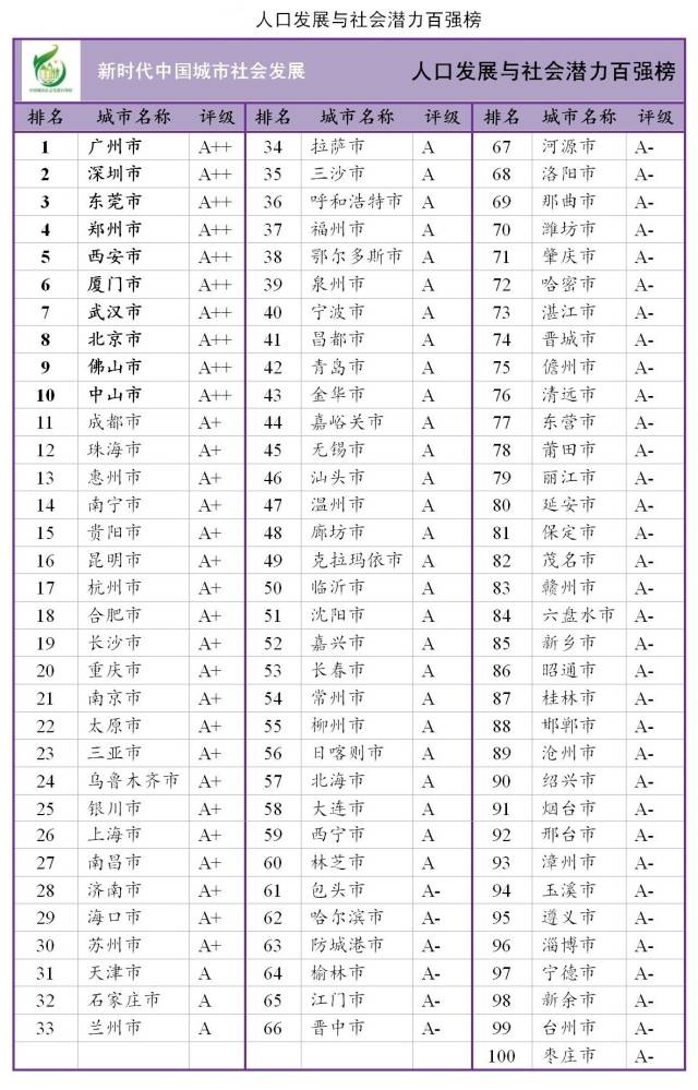人口发展与社会潜力排名全国前十
