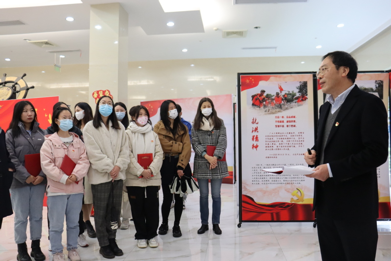 为进一步提升活动成效,让党的二十大精神学习有声有色、有血有肉,此次展览特别推出了预约讲解服务,党委委员、专职组织员、党支部书记、师生党员和入党积极分子们备受鼓舞,在精读细研党的二十大报告、党章修正案及相关辅导资料的基础上,纷纷报名参与讲解,组建了一支“有滋有味”的宣讲员队伍。仪式上,朱广忠为全体宣讲员正式颁发了聘书。