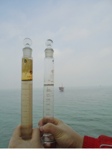 一去平台,就是将近一个月的“与世隔绝”,这是杨强教授团队每位成员都经历过的“海上故事”。无论是初期调研、侧线试验、开工调试,还是效果标定,都离不开参数的调整和取样、测试。团队成员登上平台便进入“战时状态”,要连续30多天从不同的位点取样。样品测试需要经过降温、萃取、沉降、过滤等复杂流程,最多的时候,一天要对40余个各种不同类型的水样进行测试。