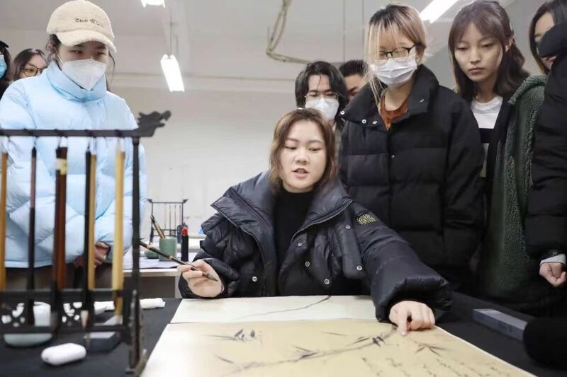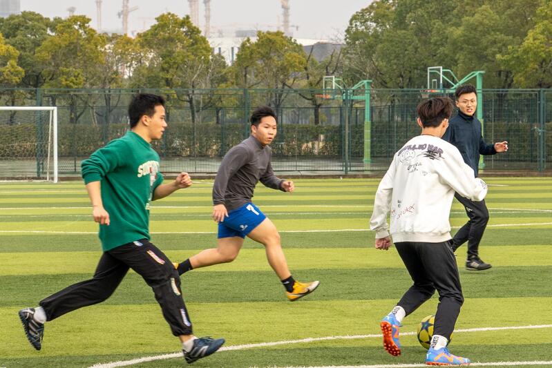 另一边,上大美术学院里正在传授“小写意花鸟临摹”课程,毛冬华老师和团队青年教师,与学生围坐一起,分享着中华传统艺术作品的笔法、功力和意蕴。而学校训练馆内,徐英姿老师正在为女生们教授“羽毛球”基础课程,周边健美操馆里也满是跳着健身操,以及挥舞着乒乓球拍的同学身影。新开学的上海理工大学为了确保让每个进入室内体育场馆的学生都能使用乒乓球桌、羽毛球场地等,还是采用线上预约方式,但使用场地之间不再间隔。