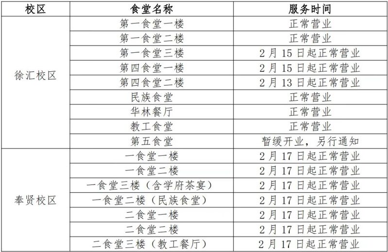 烟火气也回来啦!在华东理工大学,徐汇、奉贤两校区食堂可堂食,对前往食堂就餐的师生,校方建议做好个人防护,间隔有序排队购餐。徐汇校区的瑞幸咖啡等商铺2月15日起恢复正常营业,奉贤校区所有店铺也计划2月17日起恢复正常营业。从收发室到快递站,校园物流这两天起也正常开放和运行,9:00—19:00均为服务时间。两大校区的校医院也在工作日正常门诊挂号,在工作日中午、双休日设有值班,此外还有夜间医疗应急响应。