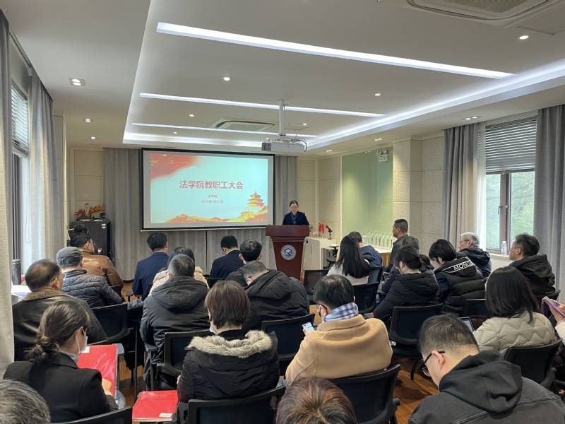 2月21日下午,法学院教师齐聚一堂,盘点过去一年中的收获,展望2023年重点工作,共绘蓝图,再启新程。大会由法学院党委书记丁灏主持。