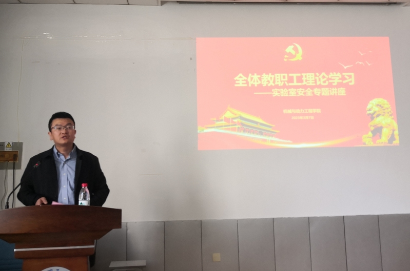 为深入学习贯彻落实党的二十大精神,坚定不移贯彻习近平总书记关于安全生产重要论述,加强实验室安全理论武装, 3月7日下午,机械与动力工程学院在徐汇校区实验10楼301多媒体室召开全院教职工大会暨实验室安全专题讲座。我校安全环保办公室主任、实验室与装备处副处长徐宏勇应邀作主题报告。机动学院党政领导班子以及全体教职工参会。大会由机动学院副院长易建军主持。