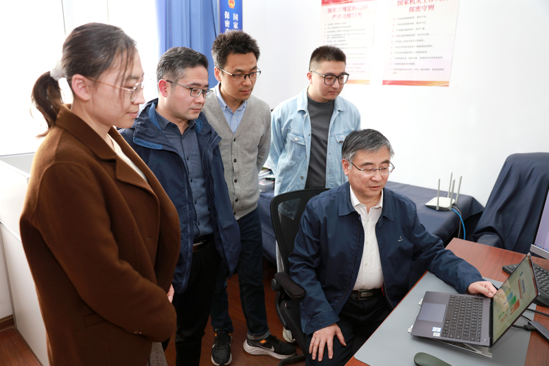 林嘉平教授与学生演示AI plus高分子软件平台功能。徐瑞哲 摄