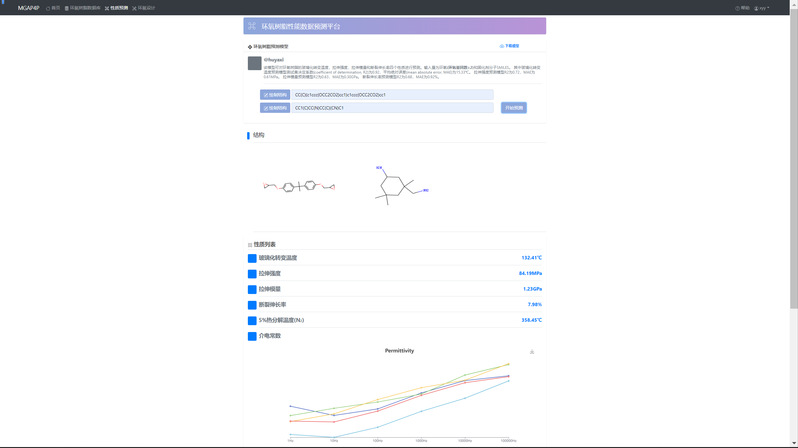 大飞机的先进复合材料该用什么高性能高分子,比如复合材料的基体树脂?化学乃变化之学,物质结构决定其性质。带着这一问题,记者在这一名为“AI plus高分子软件平台”的网页版上,利用“绘制结构”的画板任意绘制了化学分子式的结构,点击“开始预测”,短短几秒,其力学、热学、介电等多种性能指标一览无遗。