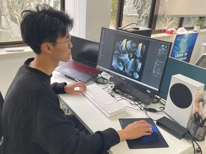 然而,校园里的设计,和公司的成熟作品相比,确实有点“小巫见大巫”的味道。他到企业实习时发现,部门里还有许多供应商(即设计外包),软件用得熟、工作效率很高。“如果我只能做平面设计,那么对总监来说,直接招个供应商显然是更具性价比的选择。”