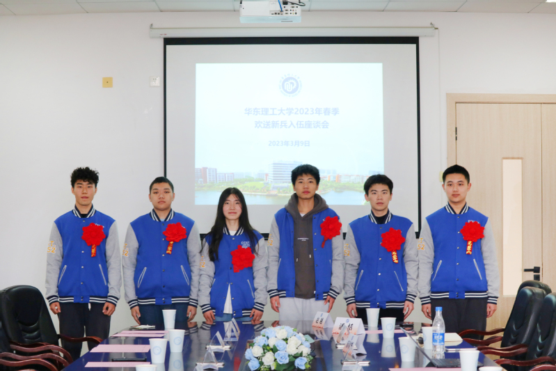 近日,学校2023年春季新兵入伍座谈会在奉贤校区大学生活动中心427举行。材料科学与工程学院党委副书记戴诚安,物理学院党委副书记、纪委书记吴舜,商学院党委副书记、纪委书记郑庆寰,外国语学院党委副书记樊俊,2023年春季新兵及辅导员参加座谈会。座谈会由党委学生工作部(处)副部(处)长陈庆升主持。