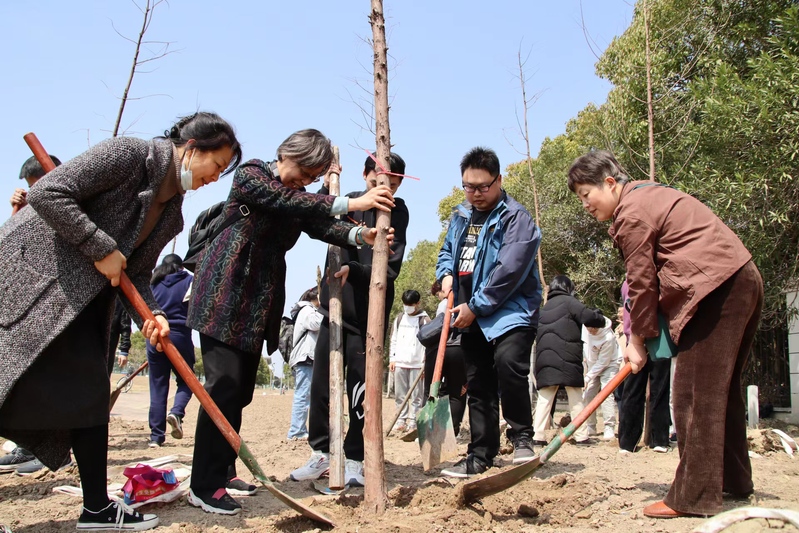 为深入学习宣传贯彻党的二十大精神,践行绿水青山就是金山银山理念,推动劳动育人走深走实,3月16日中午,党委教师工作部联合离退休工作处共同组织学校教职工代表参加了学校组织的植树活动。退休教师、青年教师30余人,与百余位学生共赴一场“绿色之约”,老中青三代华理人一起挥锹植绿,种植落羽杉150棵,共同种下一片“春天”, 共同为建设绿色学校和美丽校园贡献力量。