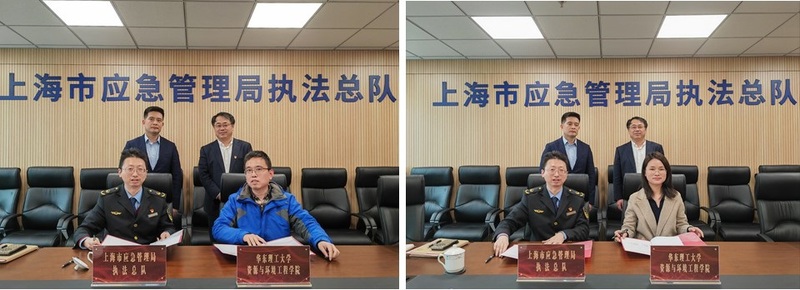 在上海市应急管理局执法总队,双方围绕产学研合作、学生实习就业、党支部共建等进行专题讨论,市应急管理局副局长杨晓东、局执法总队总队长兼党支部书记张之崟、局执法总队副总队长王强毅、局执法总队综合办公室负责人任陈峰参会交流。王强毅副总队长和孙贤波副院长分别介绍了市应急局执法总队和资环学院的基本情况,双方签订了产学研实践基地合作协议以及党支部共建协议。希望结合各自特色和优势,加强在党建共建、学生培养、实习就业、科学研究、产学研合作等方面的深入合作,推动党建和业务深度融合,为双方高质量发展赋能增效。