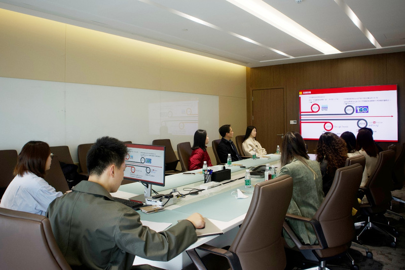3月21日上午,樊俊、侯月等师生12人一同前往上市公司、化妆品在线销售独角兽企业,上海丽人丽妆化妆品股份有限公司走访调研。公司董事长兼总经理黄梅、人力资源总监谷浩远、公关总监曹志敏等接待并介绍了企业文化、发展愿景、人才需求、岗位要求等。师生一行参观了公司办公场所,现场体验试用了公司新开发的化妆品。随后,公司运营总监、人力资源总监等企业高管组织10名日语专业和英语专业的同学开展了无领导小组讨论。根据现场表现,2位同学获得了公司管理培训生录用函。