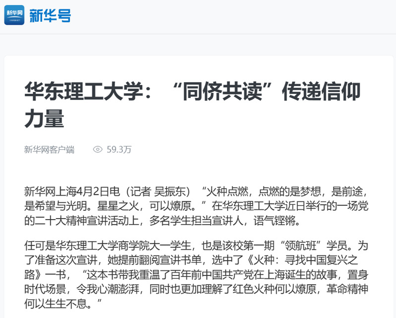 【新华网】华东理工大学:“同侪共读”传递信仰力量