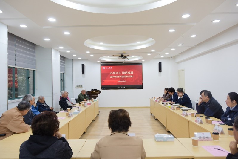 莫道桑榆晚,为霞尚满天。4月4日上午,化工学院在实验十六楼组织了“心系化工 情系发展”离退休教师代表返校活动,诚挚邀请了十位学院退休教师代表回校交流座谈。化工学院党委书记朱学栋、院长李春忠、副书记段学志、副院长刘殿华、工会主席王际童和学院教师代表参加了本次活动。大家叙情往昔,共话学院发展。