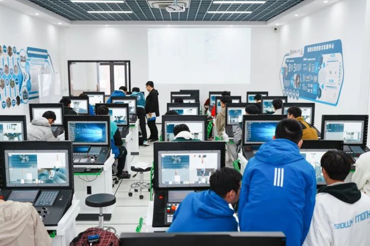 “输入程序,点击运行……”数控云实验室里,在工创中心教师严莹的带领下,学生们开启了一场场“沉浸式”数控虚拟仿真实践体验之旅。在智能数控云仿真平台上,学生们可以多角度、全方位地学习了解数控机床的结构,通过对工件加工全过程的模拟操作,验证加工工艺的可行性、程序运行的可靠性、操作规程的安全性。在仿真系统中,机床动作非常逼真,学生们犹如置身真实的加工场景。