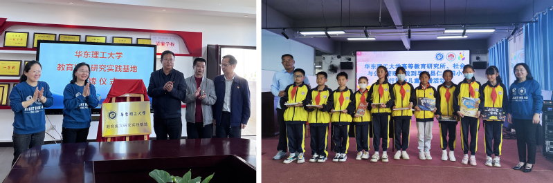 座谈会上,我校高等教育研究所所长周玲教授介绍了学校教育振兴研究情况、长三角教育现代化研究情况,听取了寻甸县教育体育局副局长张兴强关于寻甸县教育发展情况的汇报,就教育规划、教育教学改革、教育服务展开了深入交流。周玲表示,高教所将结合寻甸教育实际,以教育学一级学科点为依托,与寻甸县展开深度合作,共同出谋划策,助推寻甸教育高质量发展。我校社会与公共管理学院党委副书记、高教所导师储琰介绍了社工服务团的有关情况,并与相关学校就后续社工服务展开工作对接。会上,“华东理工大学教育振兴研究实践基地”揭牌仪式和“社会工作服务实践基地”签约仪式举行,调研组还向仁德四小、六哨乡中心学校捐赠了少儿书籍和书包文具。
