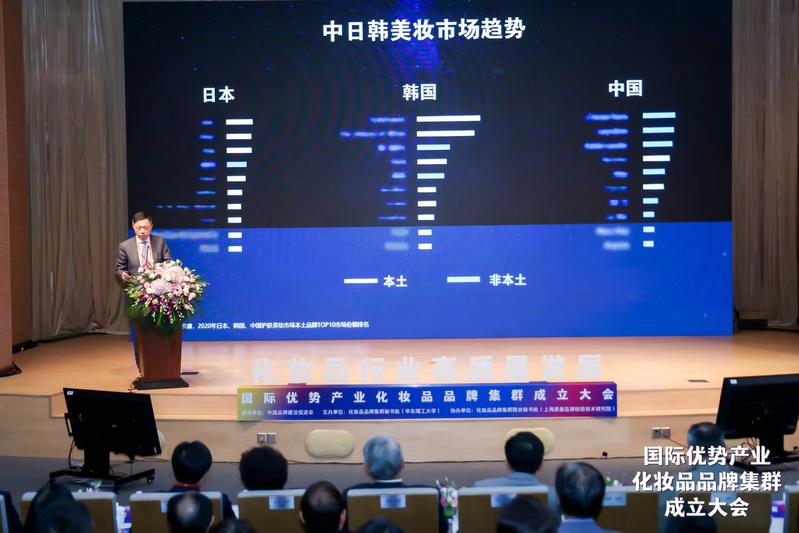 当日国际优势产业化妆品品牌集群成立,首批成员为21家。