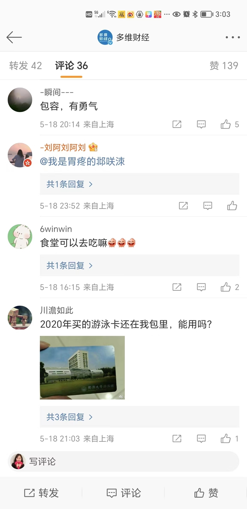 大学校园对社会开放,也受到了广大市民的欢迎。不少人在微博上留言“终于又能自由进出大学校园了。”“我2020年办的游泳卡,又能重新使用了。”“哇!又可以去操场夜跑啦!”“包容,有勇气!”“改天就去!”