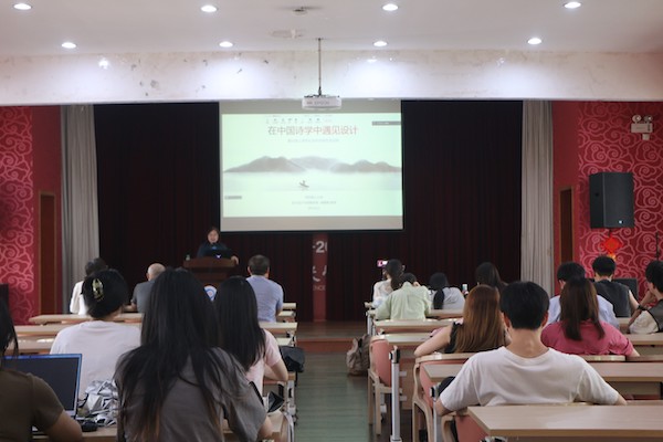 从营宅建园、亭台楼阁、画栋雕梁、造景造像到耕读传家,傅蓉蓉从5个维度带着现场师生品读诗词,探讨中国古典诗歌中所体现的艺术观、哲学观,也剖析当代中国设计中所蕴含的中式审美。“营建园林与宅院,如同写一首诗,讲究起承转合;如同画一幅画,重视虚实相生;如同讲一个故事,有发端、高潮与冲突。”同时她也直言,“穿凿附会、生搬硬套是营宅建园的大忌,再精致工巧或者独具匠心的设计与环境格格不入,就会产生突兀感、割裂感,缺乏说服力。”