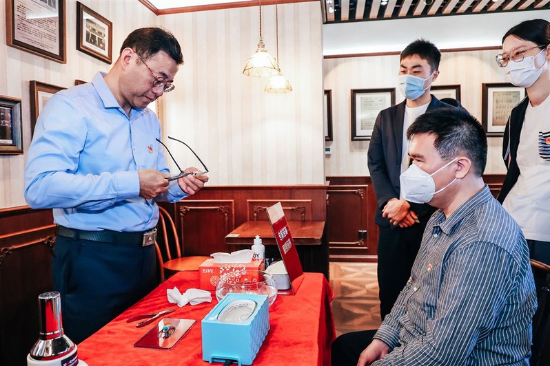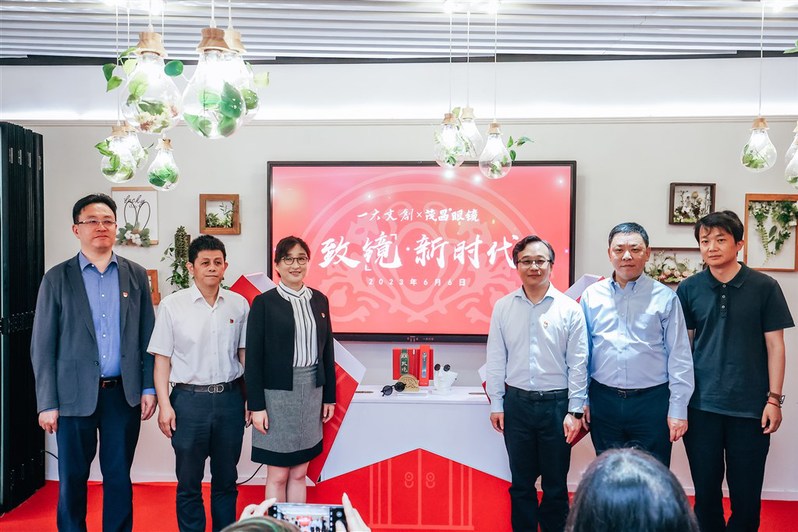 东方网记者董浩帆6月6日报道,今天正值芒种,也是“全国爱眼日”。以“致‘镜’新时代”为主题的“一大文创×茂昌眼镜”联名款新品预售发布会在位于黄陂南路373号的一咖啡店内举行。