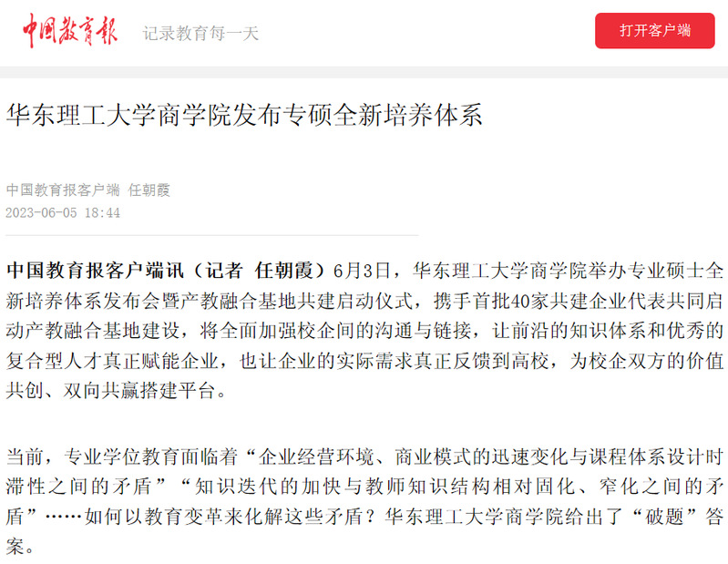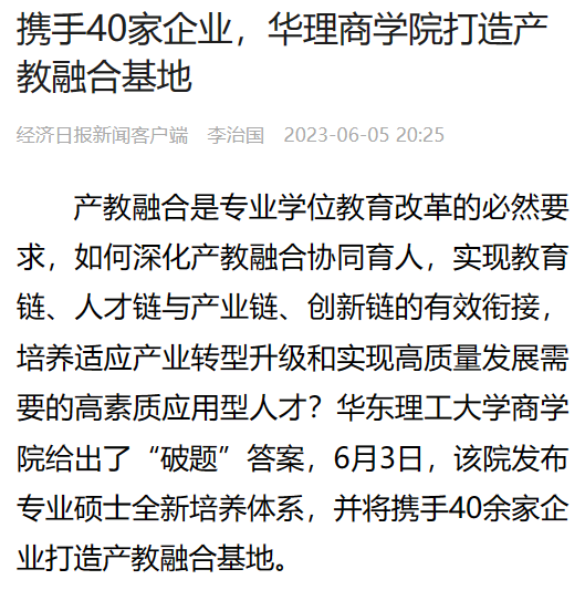 【中国教育报客户端】华东理工大学商学院发布专硕全新培养体系