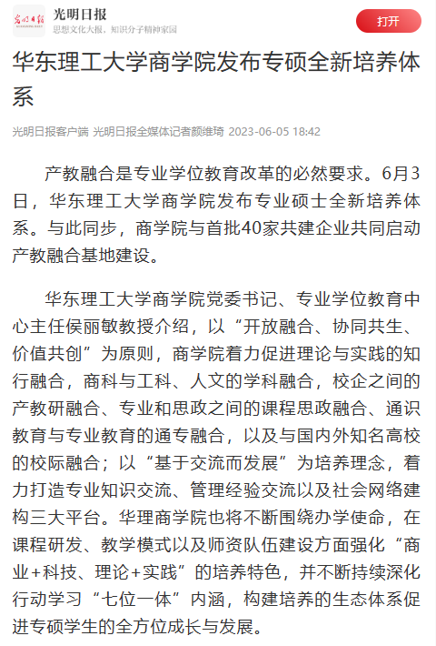 【光明日报客户端】华东理工大学商学院发布专硕全新培养体系