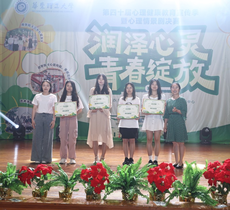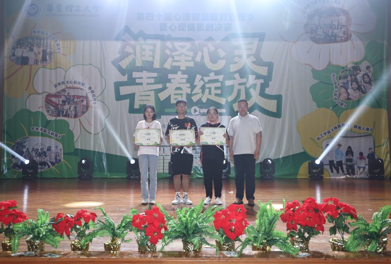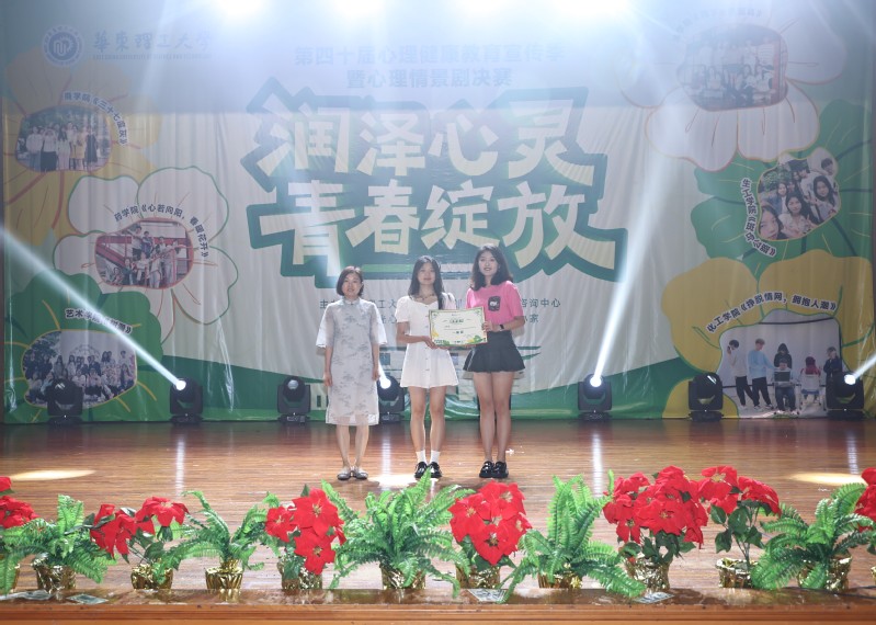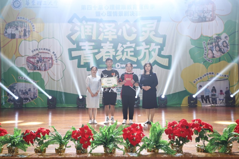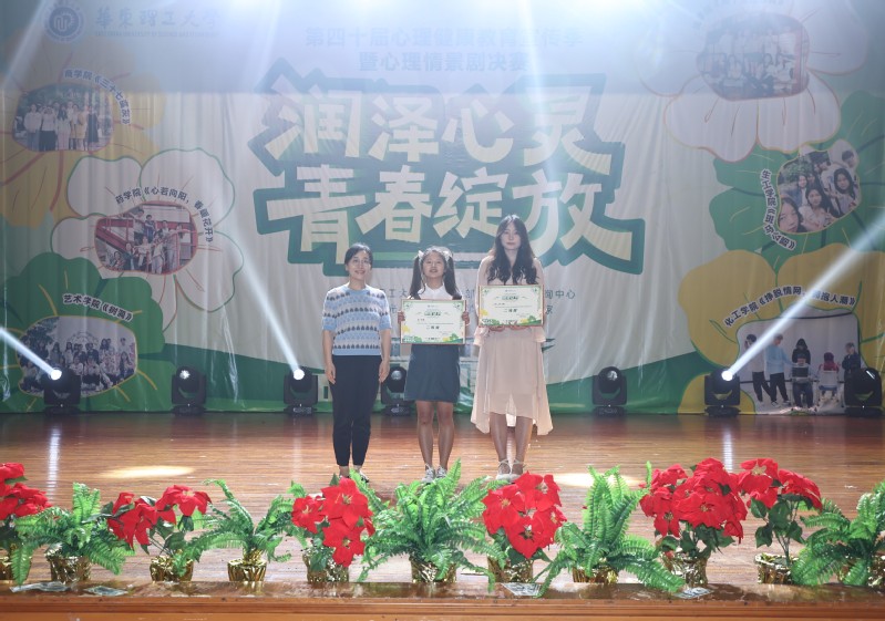 本届心理情景剧大赛由初赛和决赛两部分组成,自3月启动以来,得到各学院的积极响应。经初赛选拔,有6支队伍进入决赛。经过近两个小时的激烈角逐,最终,法学院《摘下“金色面具”》荣获一等奖;商学院《三十七度灰》、生物工程学院《斑马公路》荣获二等奖;艺术设计与传媒学院《树洞》、化工学院《挣脱“情网”,拥抱人潮》、药学院《心若向阳 春暖花开》荣获三等奖。此外,法学院《摘下“金色面具”》获最佳表演奖,商学院《三十七度灰》获最佳编剧奖,生物工程学院《斑马公路》获最佳舞台效果奖,化工学院《挣脱“情网”,拥抱人潮》获最佳创意奖;药学院、艺术学院获“优秀组织奖”;资源与环境工程学院、数学学院获“优秀奖”。
