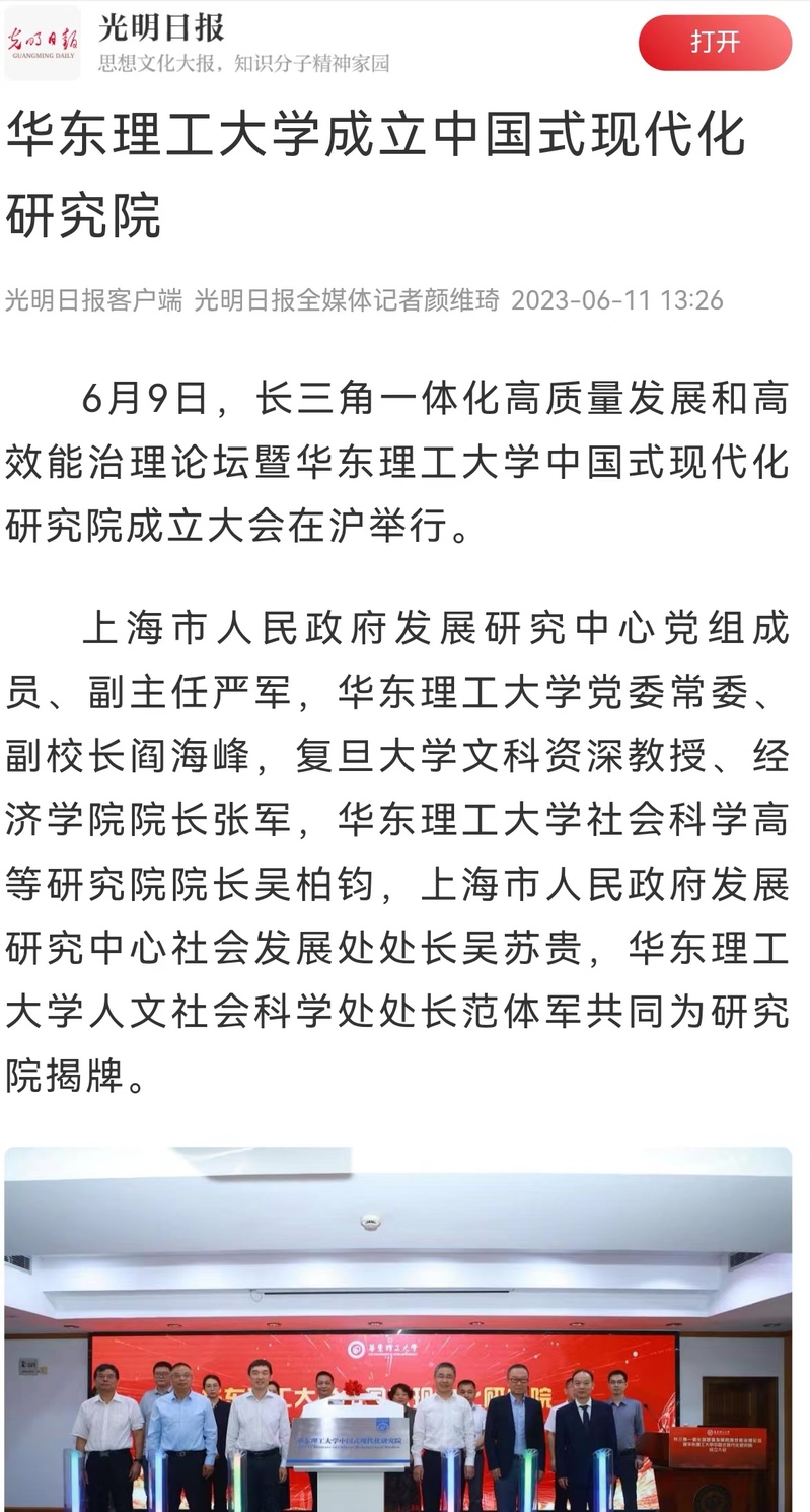 【光明日报客户端】华东理工大学成立中国式现代化研究院