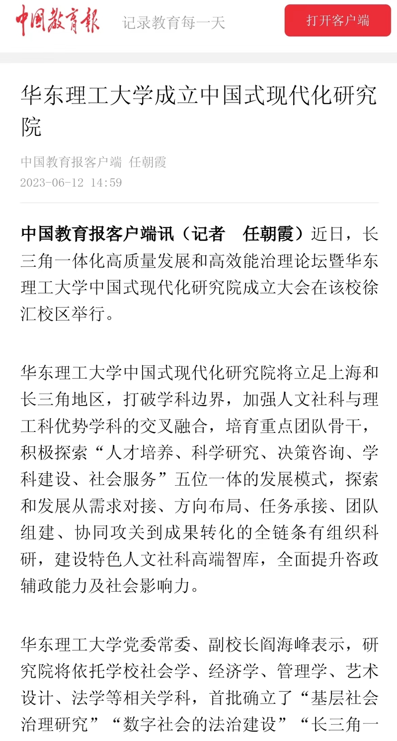 【中国教育报客户端】华东理工大学成立中国式现代化研究院