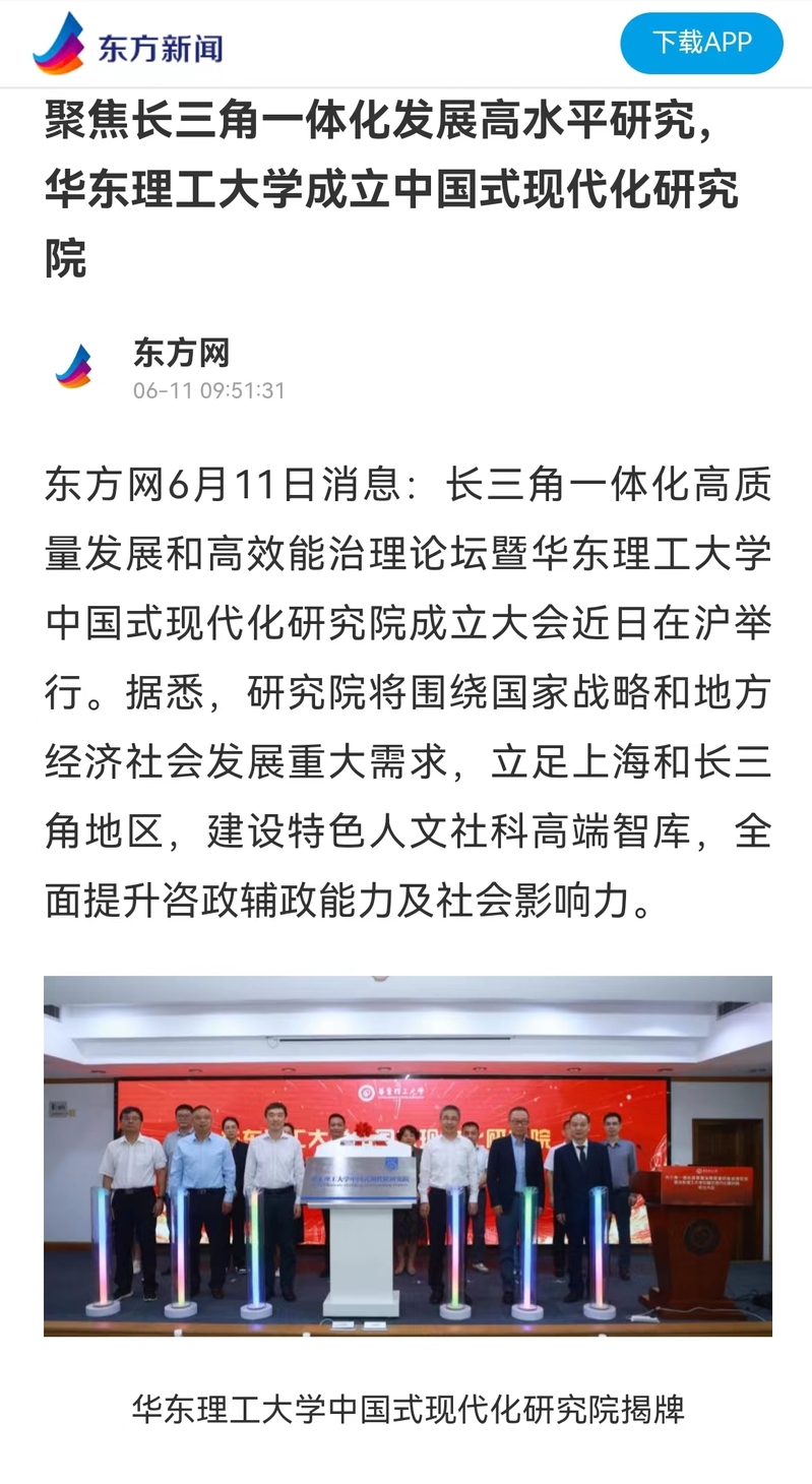 【东方网】聚焦长三角一体化发 展高水平研究,华东理工大学成立中国式现代化研究院