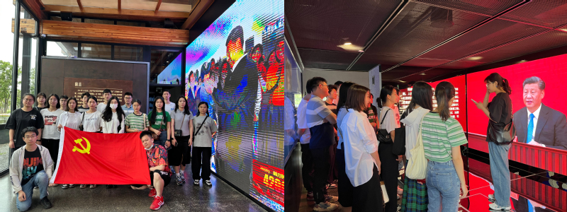 大家首先来到中共一大纪念馆和中共二大会址纪念馆。党员叶方圆讲述道,习近平总书记于2007年3月瞻仰中共一大、二大纪念馆时指出,瞻仰中共一大和二大会址,目的是接受革命传统教育,重温党的光辉历程,缅怀党的丰功伟绩,学习革命先辈的崇高精神,进一步激发为党和人民的事业不懈奋斗的豪情和斗志,把上海建设得更美好。“作为学生党员,我们应该深入学习党史,继承优秀革命传统,同时也要始终保持与人民群众的联系,和人民群众团结一心。”党员张冠伦在参观时说。