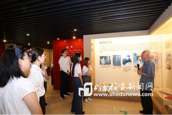 朱孔阳为参观红润展厅的党员作讲解
