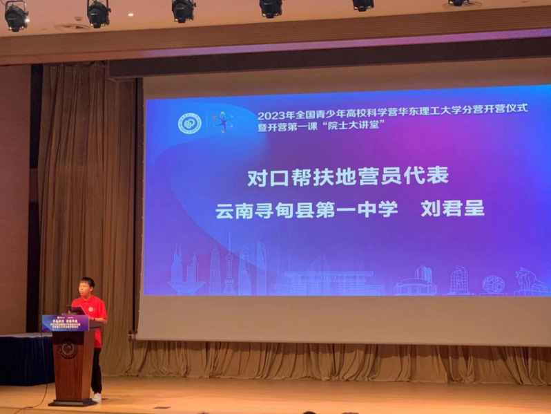 今年暑假,他在研支团的带领下参加科学营,与来自全国各地的小伙伴们一起探索科学的奥秘。包括刘君呈在内,华东理工大学今年资助了20位寻甸的高中生,帮助同学们作为自主营员,参加青少年高校科学营。科学营之旅让刘君呈明白了科学贯穿于我们生活的方方面面,也让他意识到自己可以通过科学地学习和应用来改变世界。刘君呈也把华理作为自己的高考目标。