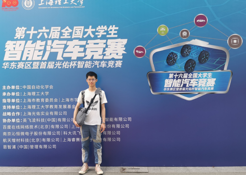 大三时,褚世旋作为负责人,开展了智能车和水面垃圾清理器项目研究。在竞赛中,他主动学习图像处理、GPS与陀螺仪模块的使用,进一步改进了无刷电机的控制方案,设计了多传感器融合的控制方案。为了寻找适合智能车实验的场地,他独自在烈日炎炎的操场上奔跑,观察智能车行动轨迹并不断改进。最终,褚世旋带领团队在第十七届全国大学生智能车竞赛中取得极速越野组华东赛区第一名、全国三等奖的优异成绩。说起为了智能车拼搏的日日夜夜,褚世旋至今都记忆犹新:“只能通过一次次测试,让系统一点点完善起来,要学的东西也越来越多,但我很享受这个学以致用的过程。”