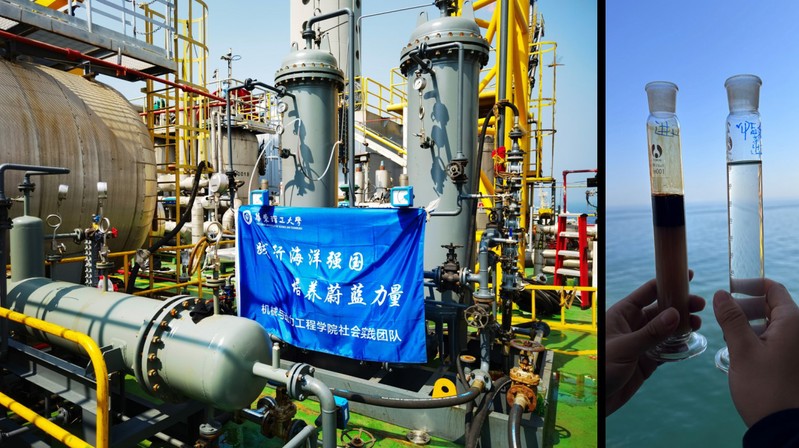 自2014年至2023年间,实践团队已历经三代成员,累计形成调研报告、项目建议书近20余份,发表论文10余篇,海上累计服务时长超过8000小时,成功解决了我国海上油气田苛刻处理条件下的生产水处理难题,切实为国家能源安全及海洋强国战略作出了贡献。今年暑期,他们围绕海洋石油开采过程全流程水质图谱的完善和采出液短流程处理工艺及高效处理装备的升级开展了社会实践活动。