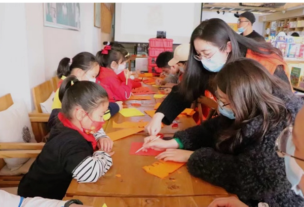 怀揣着对剪纸艺术的热爱,王桐予以行践言。大学的第一个寒假,她在家乡高铁站与小伙伴一起参加了庄河市委宣传部组织的“春运平安行,文化进万家”活动,将亲手制作的剪纸作品送给归乡人和一线工作人员。在“返家乡”社会实践活动中,她制作了多幅家乡辽宁的红色地标及党史大事件等剪纸作品,并以此为载体,与同伴前往家乡小学,在孩子们心中播下“非遗种子”。
