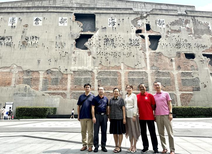 随后,一行人来到四行仓库抗日纪念馆。一座仓库,因为英雄的坚守,而成为民族永恒的丰碑;一场战斗,因为先辈的热血,而成为民族永远的记忆。弹痕累累的仓库墙上,记录了先辈们浴血奋战的战斗场景,体现了先辈们保卫祖国、奋战到底的精神和勇气。