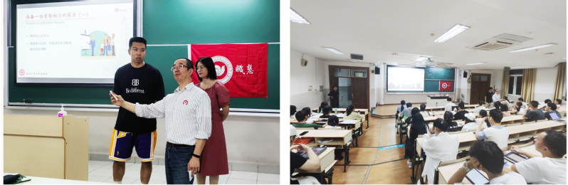 简历制作讲座中,杨晓东针对学生简历中容易忽视的实习经历、项目经验、针对性不强等问题,通过重点突出、内容匹配、具体准确、精心准备四大要素,讲授如何将经历包装成“卖点”,如何将经历转化为亮点,帮助学生梳理简历制作的核心关键。在成功面试讲座中,杨晓东以互动形式与学生探讨了面试过程中重点和难点,他以准备面试、展示过去、回应假如、匹配动机为切入点,揭示了面试背后的关键因素和核心逻辑,鼓励学生要多做练习、不断复盘,加强自信。