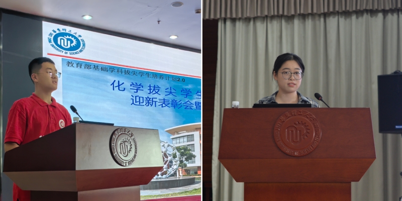 2023级基地班陆应淇同学作为新进学生代表发言。他谈及了由高中到大学在思想上的转变,并代表全体基地班新生表达了“向前辈学习,将青春献给化学”的信念和决心。2021级基地班相明涵同学作为优秀学生代表发言,回顾了在基地班学习生活的经历,并鼓励学弟学妹们保持思考、勇于尝试、不设限制,锻造清醒理智且思辨求真的头脑,走上深思熟虑并坚持求是的道路,在热爱的领域绽放自己的光芒。