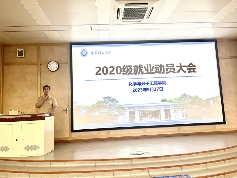 为进一步做好2024届本科毕业生就业工作,增强学生职业规划意识,树立正确的就业观念,认清就业形势,把握就业机会,近日,化学与分子工程学院召开了2024届本科毕业生就业动员大会。大会邀请了学校就业指导服务中心副主任盖钧超、化学学院2023届优秀毕业生孙英博为同学们开展就业生涯指导和就业经验分享。化学学院党委副书记孟庆鹏及2024届本科生出席了此次大会。会议由化学学院2020级本科生辅导员聂婷主持。
