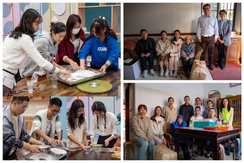 此外,同学们还在新叶村阿姨们的指导下亲手制作了重阳糕,在劳动中体验传统民俗,传承中华优秀传统文化,感受节日的氛围。之后,团员青年代表带着亲手制作的糕点和节日慰问品前往村里看望百岁老人,送去温馨的祝福。