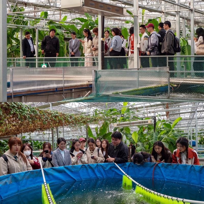 理论学习结束后,商学院“青马工程”学员在田园里开展了系列体验学习活动。在腾达兔业专业合作社,同学们在负责人顾永豪的带领下,实地考察了水果栽培、渔业养殖、生物实验室等项目,切身感受了党的十八大以来,党中央坚持推动农业农村发展的相关政策给“新农人”们带来的巨大支持,感受到了乡村振兴战略取得的巨大成就。